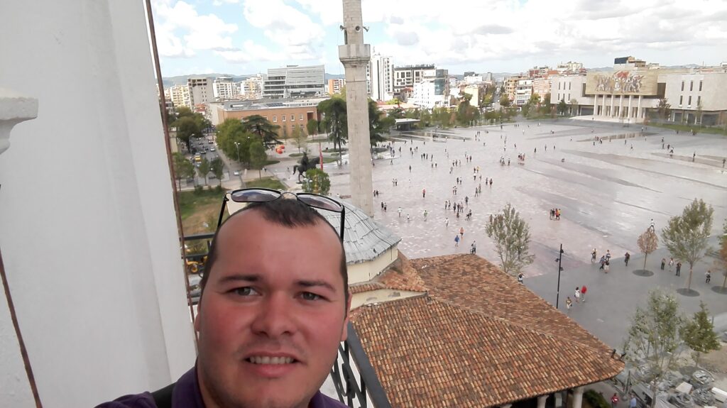 După zilele liniștite de la malul mării, Tirana a venit ca o schimbare de decor aproape bruscă. De pe drumul care lega Durrësul de capitală, orașul ni s-a deschis treptat, fără grabă, ca și cum ne-ar fi lăsat timp să ne desprindem de plajă și să intrăm într-o altă stare. Autocarul a oprit în apropierea Pieței Skanderbeg, iar de acolo am coborât direct în centrul simbolic al Albaniei.