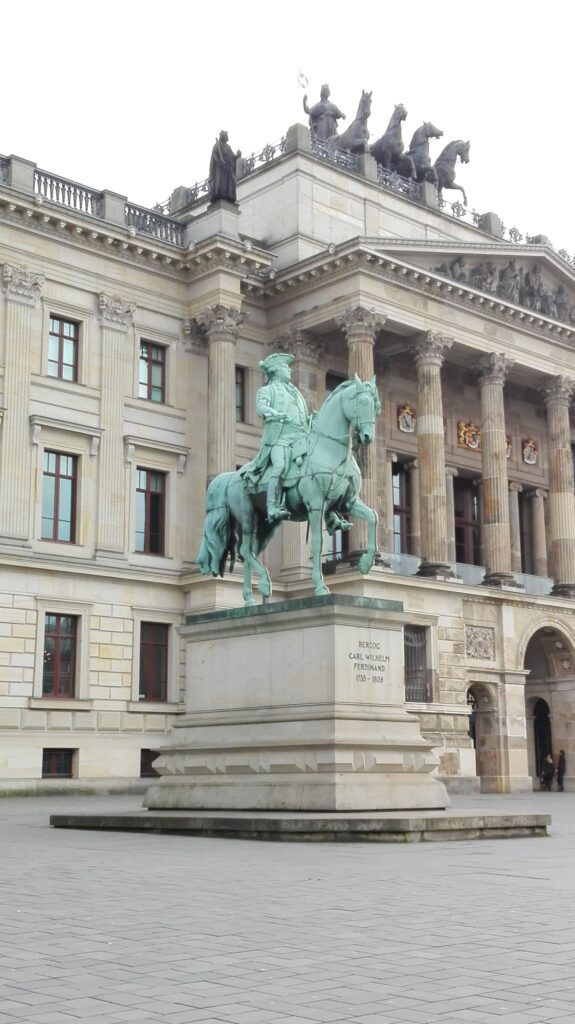 După pauza lungă și prietenoasă din berărie, ne-am îndreptat spre Palatul Ducal, unul dintre simbolurile Braunschweigului. Din exterior clădirea impune respect: fațada masivă, coloanele elegante și statuia care domină piața îți dau impresia că intri într-un loc unde istoria se scrie cu majuscule.