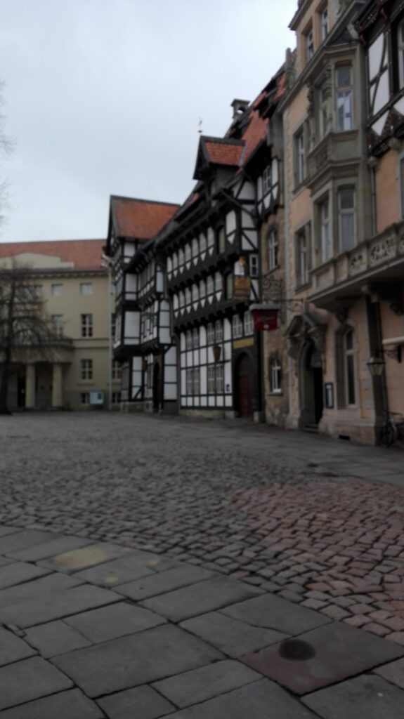 După câteva minute de mers pe jos prin ploaia măruntă, am ajuns în locul care este considerat sufletul Braunschweigului: Burgplatz. Piața are ceva aparte – e ca un decor de film medieval unde toate clădirile par să-ți spună o poveste.