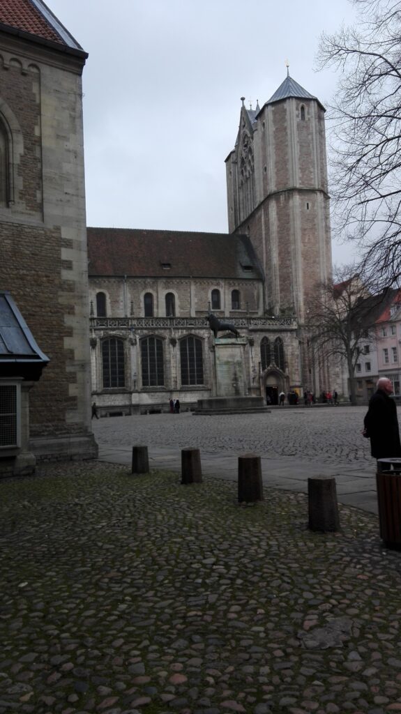 Într-un final am coborât, scăpați cu bine din mulțime. Ploaia ne aștepta cuminte afară, dar de data asta nu ne mai deranja. Eram în centru, iar următoarea oprire era Burgplatz, acolo unde leul legendar veghea de secole peste Braunschweig.