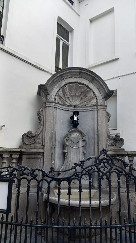 Am găsit fântâna pe o străduță îngustă, iar în jurul ei se strânsese un grup de turiști care fotografiau cu entuziasm. Statuia e mică, dar are un farmec aparte, mai ales pentru că belgienii o tratează ca pe un simbol viu. Am aflat că e îmbrăcată periodic în costume tradiționale din diferite țări, iar garderoba lui e atât de mare încât are propriul muzeu.