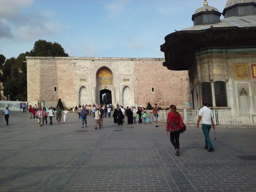 Intrarea în Palatul Topkapi e ca un test de răbdare. Primele două curți le poți vizita gratuit, cu grădini largi, ziduri vechi și turiști care fac poze din toate unghiurile. Dar când ajungi la a treia curte, trebuie să plătești biletul. Acolo începe partea „serioasă”: coridoare lungi, camere destul de goale și explicații sumare, lăsându-te să decizi dacă te descurci singur sau plătești un ghid. Noi, evident, ne-am încăpățânat să fim exploratori independenți.