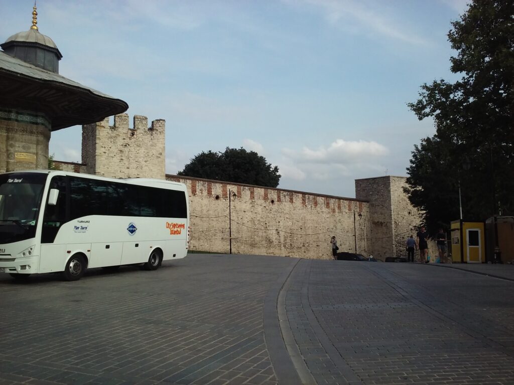 Pe drum, însă, ne-am trezit în fața zidurilor vechi ale Constantinopolului. Bineînțeles, bucurie mare – un obiectiv turistic neplanificat! Am scos telefoanele, am făcut poze și am admirat construcția veche de secole. Dar surpriza adevărată a venit imediat: acolo unde ar fi trebuit să fie stația de feribot, era doar un șantier. Nici urmă de vapoare.