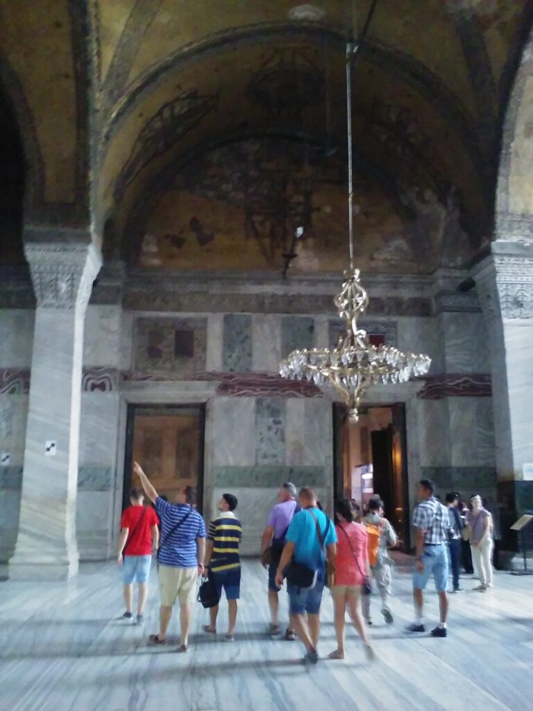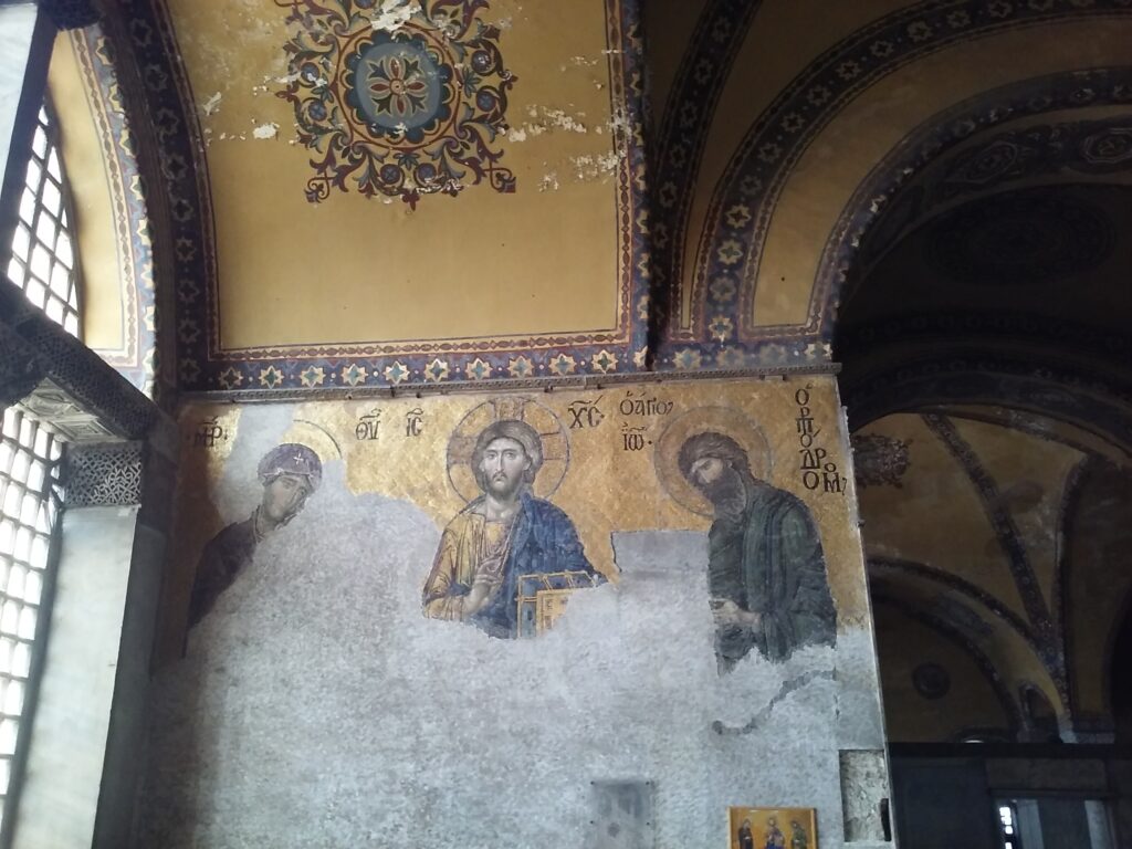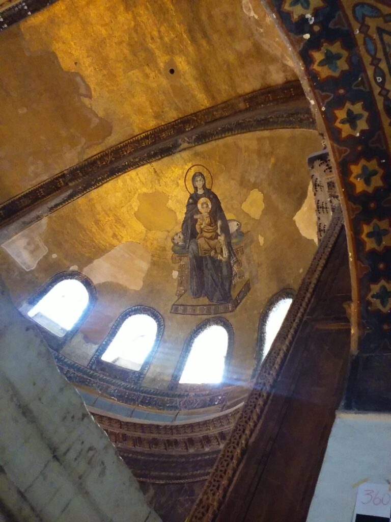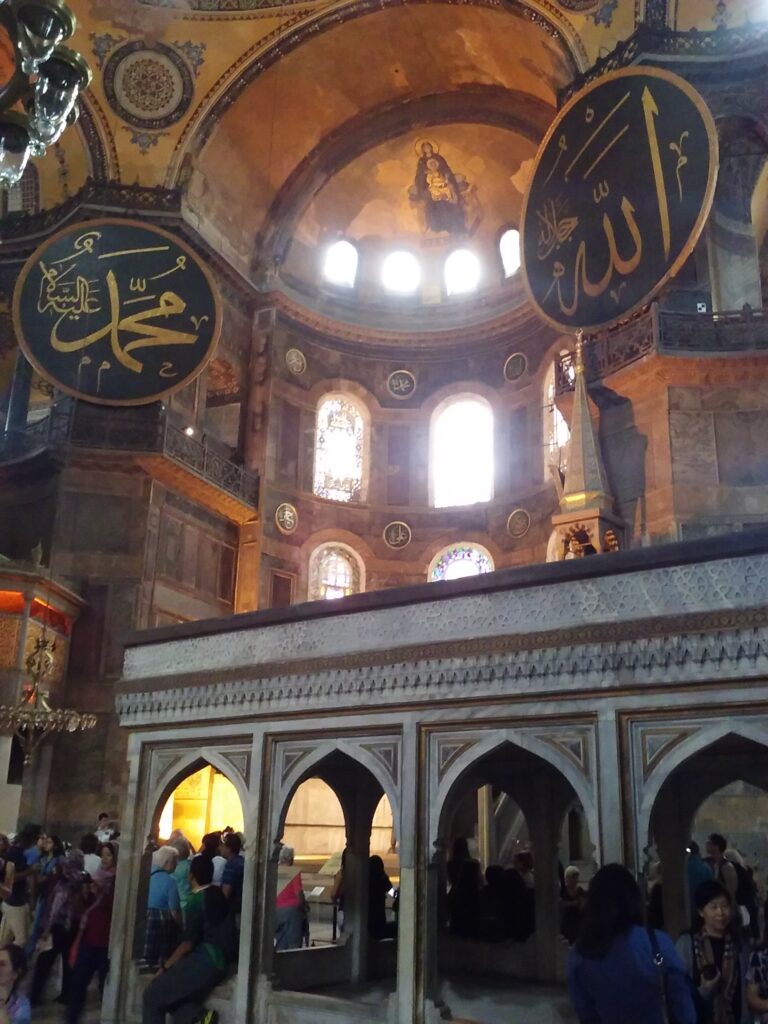 Am intrat și, pentru câteva clipe, am rămas fără cuvinte. Înăuntru, cupola uriașă parcă plutea, sprijinită pe coloane masive. Mozaicurile creștine străluceau palid din colțuri, iar caligrafiile arabe se ridicau deasupra lor, ca un dialog peste veacuri. Bizanțul și Islamul, doi vecini forțați să împartă aceeași casă.