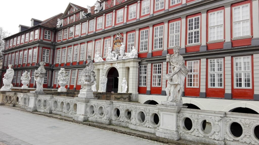 După spectacolul carilonului, ne-am ridicat de la terasă și am pornit spre castelul din Wolfenbüttel. Construcția lui domină piața și, de la distanță, îți dă impresia unui palat renascentist elegant, dar cu aer de fortăreață.